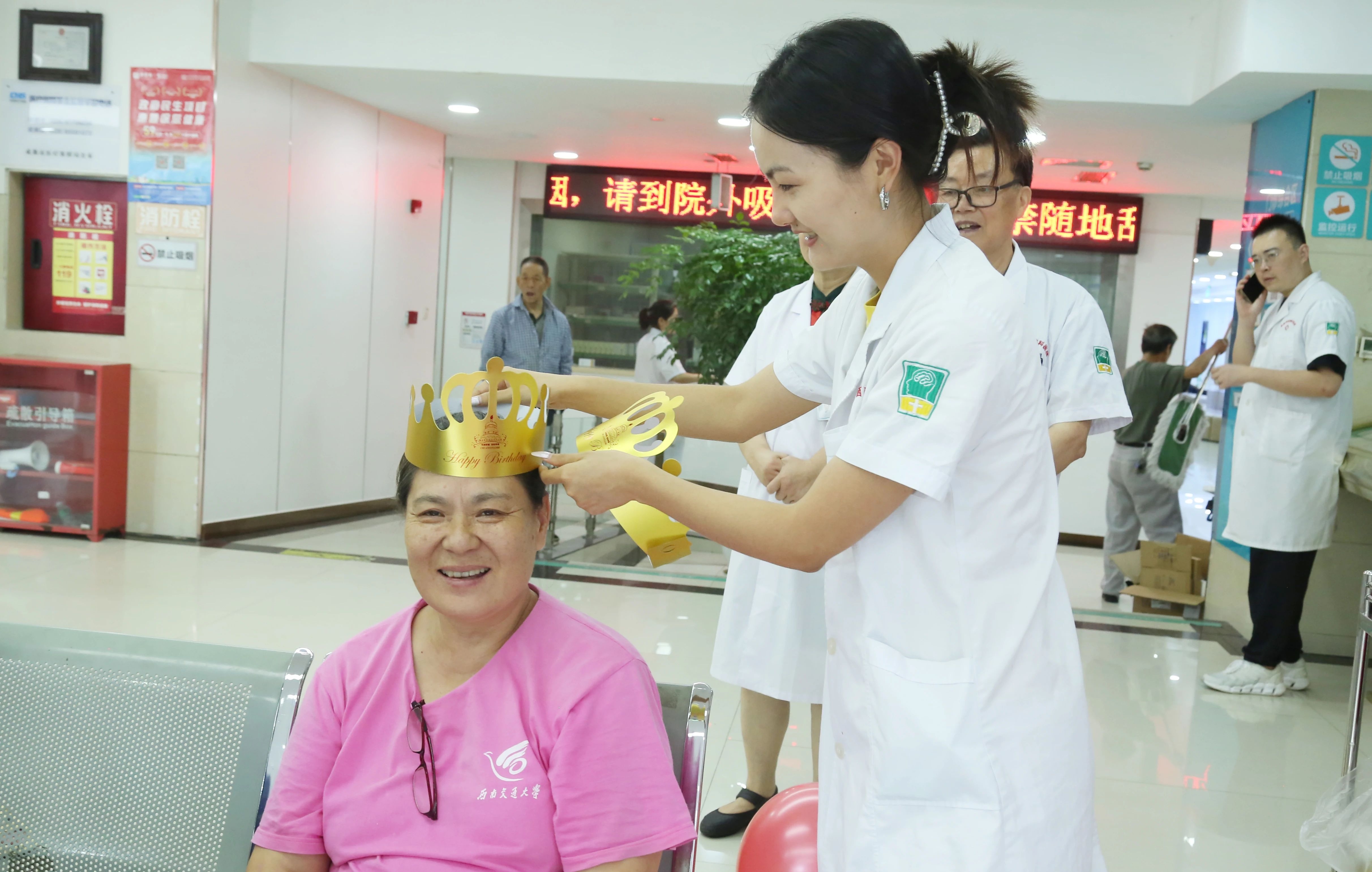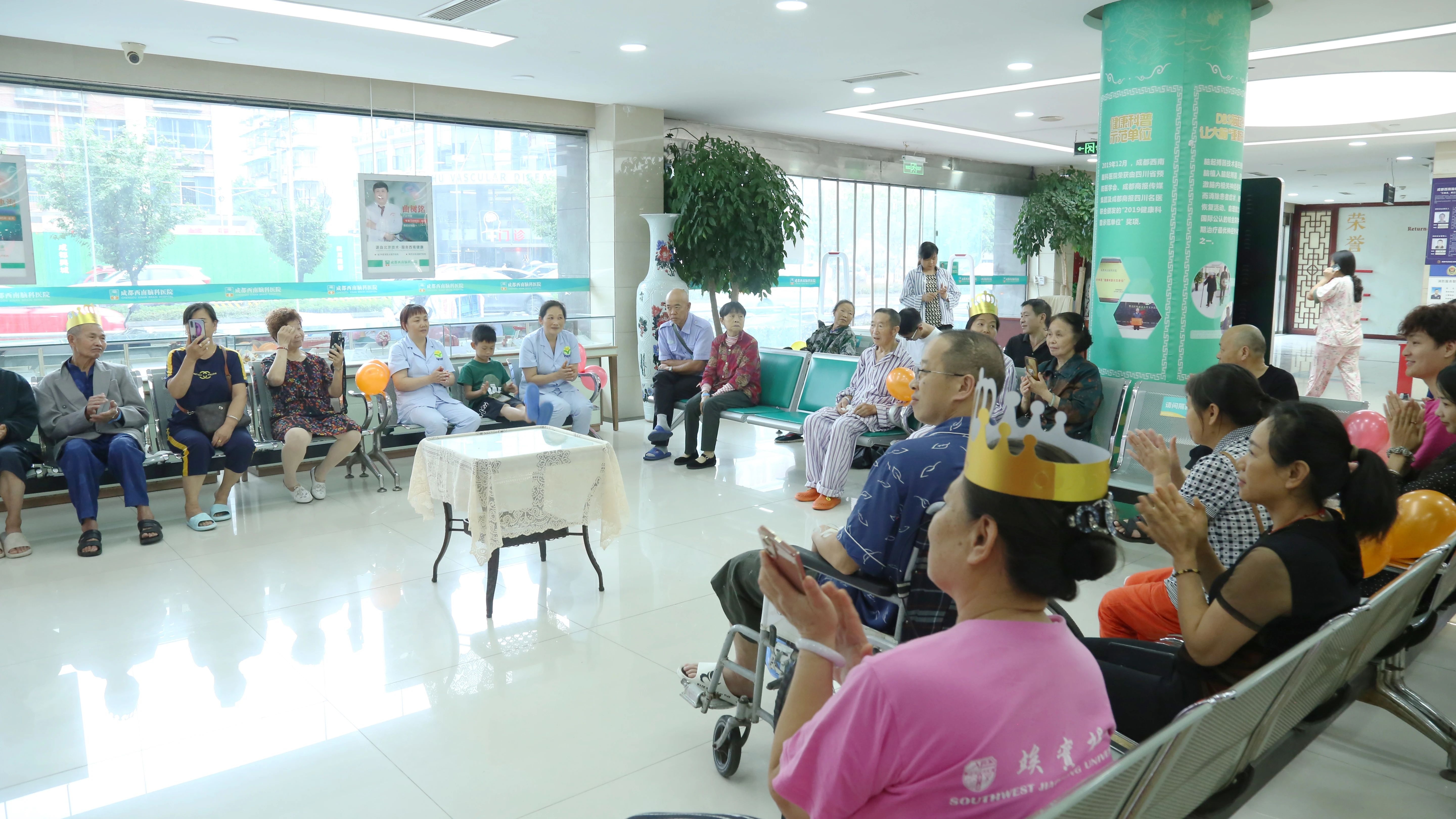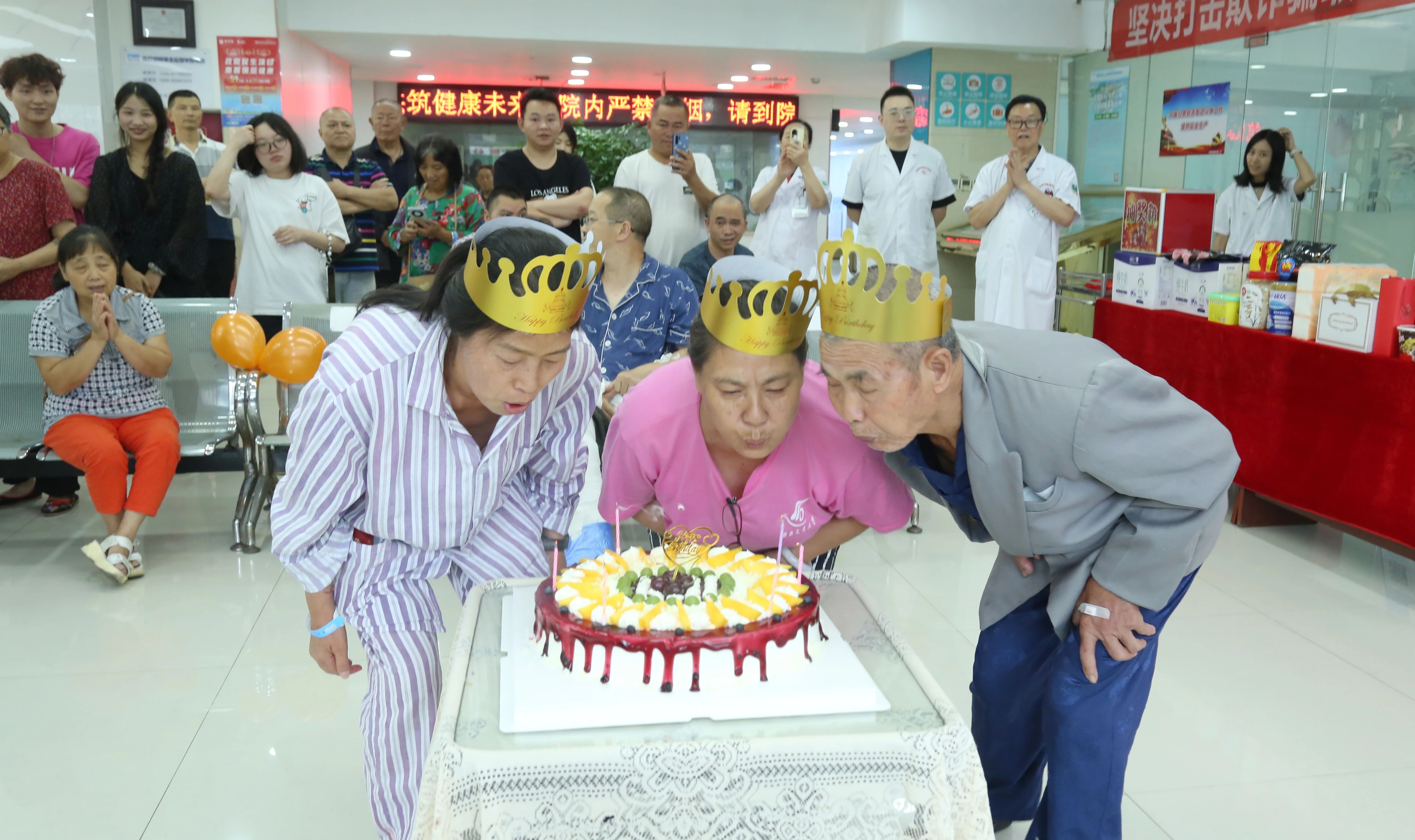 下午3点,寿星们陆续来到医院大厅,在仪式感满满的氛围中,在真挚的祝福声中,戴上生日帽,欢乐开启生日派对。